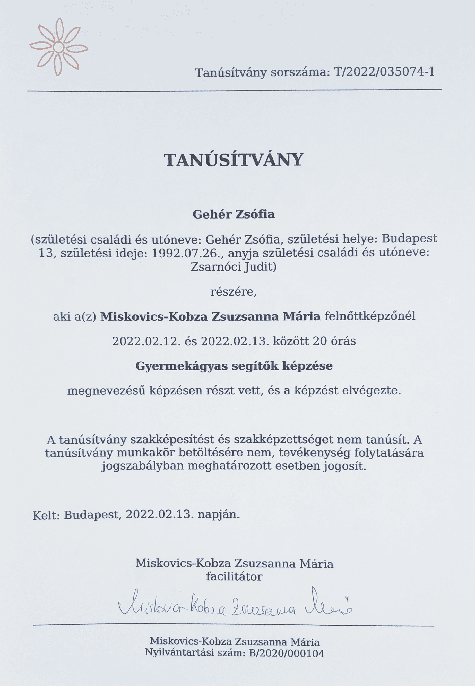 Postpartum Doula Training - 20 hours- Miskovics-Kobza Zsuzsanna Meső (2022. Veresegyház)