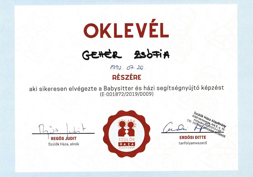 Babysitter és házi segítségnyújtó képzés - 20 óra - Szülők Háza Alapítvány (2020. Budapest)