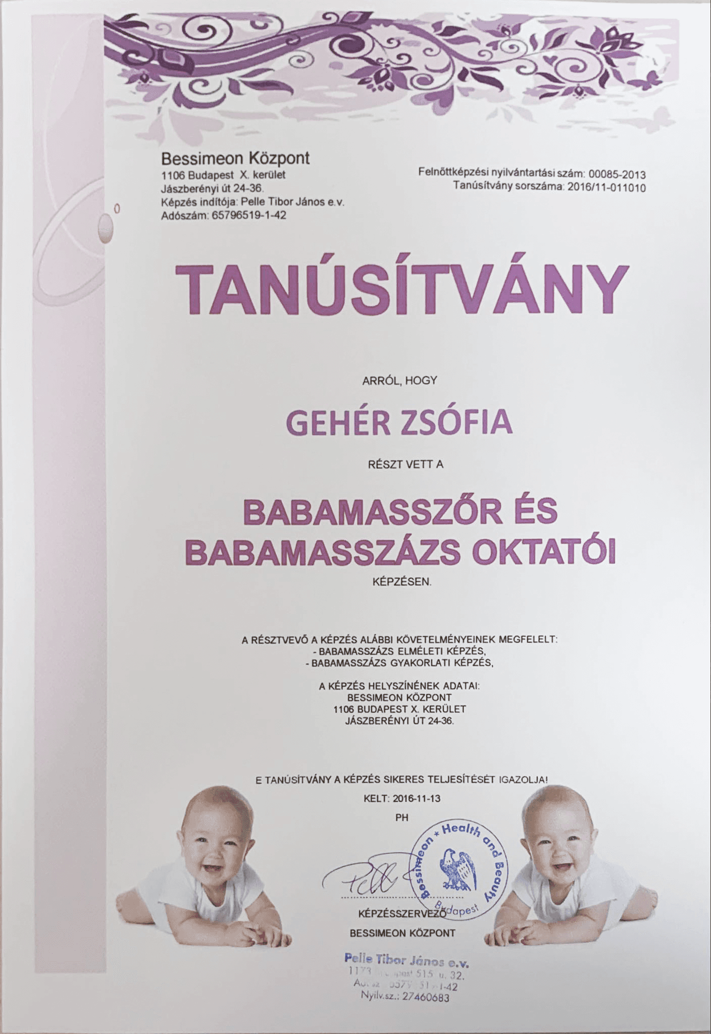 Baby Massage Therapist and Baby Massage Instructor - 32 hours - Bessimeon Központ (2016. Budapest)