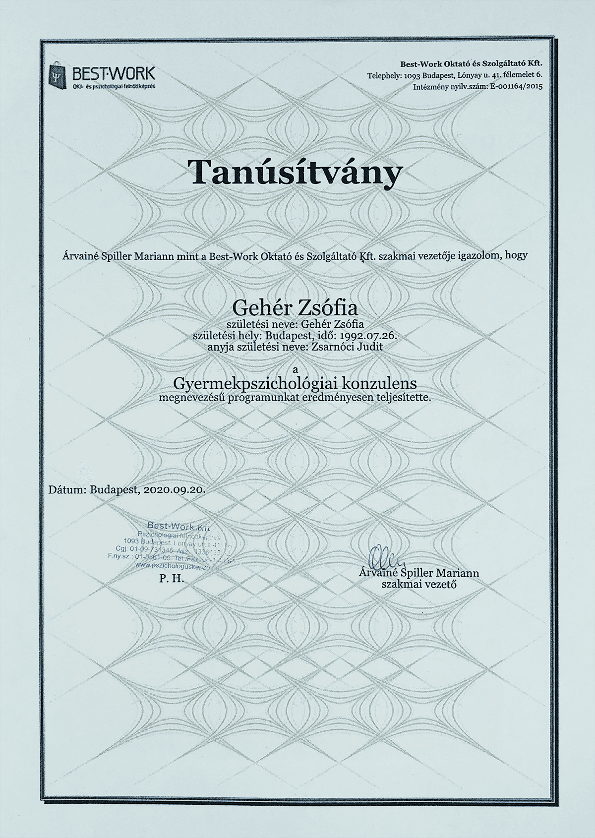 Child Psychological Counselor - 32 hours - Best-Work Oktató és Szolgáltató Kft.