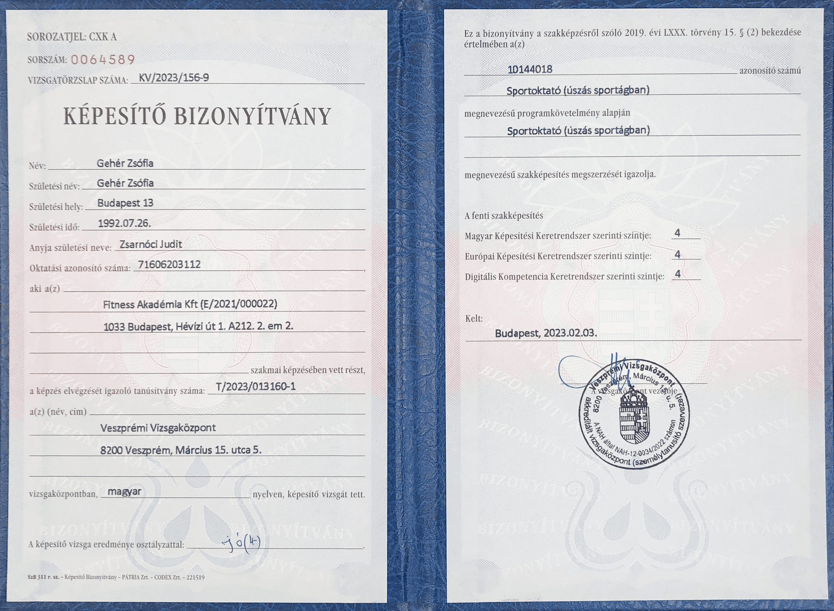 Swimming Instructor Training - 250 hours - Fitness Akadémia (2022-2023. Budapest)