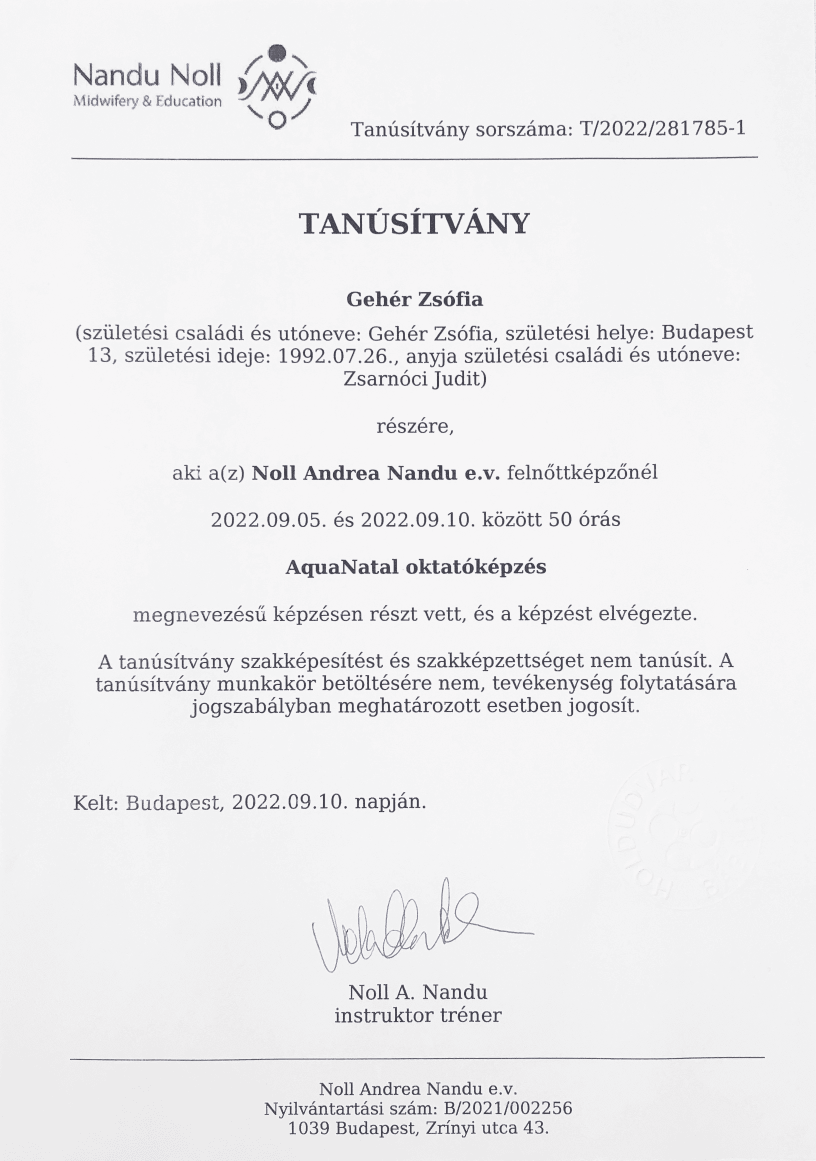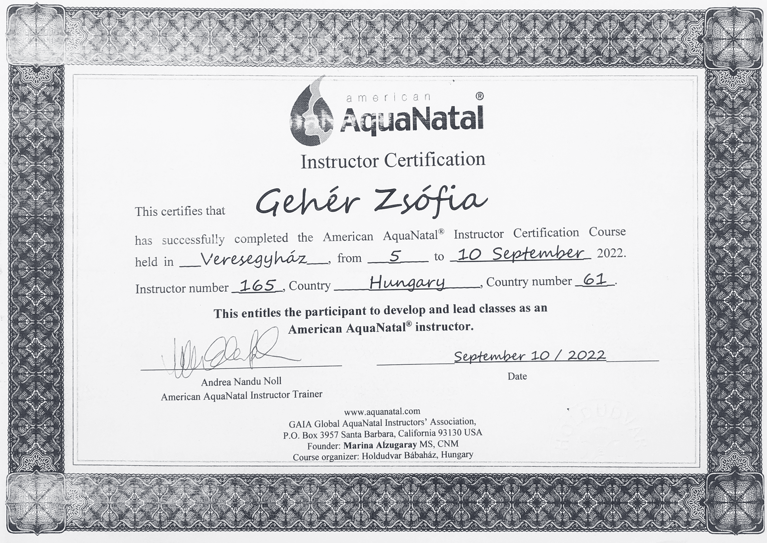 Amerikai AquaNatal® Instructor Training Course - 50 hours - Noll A. Nandu (2022. Veresegyház)