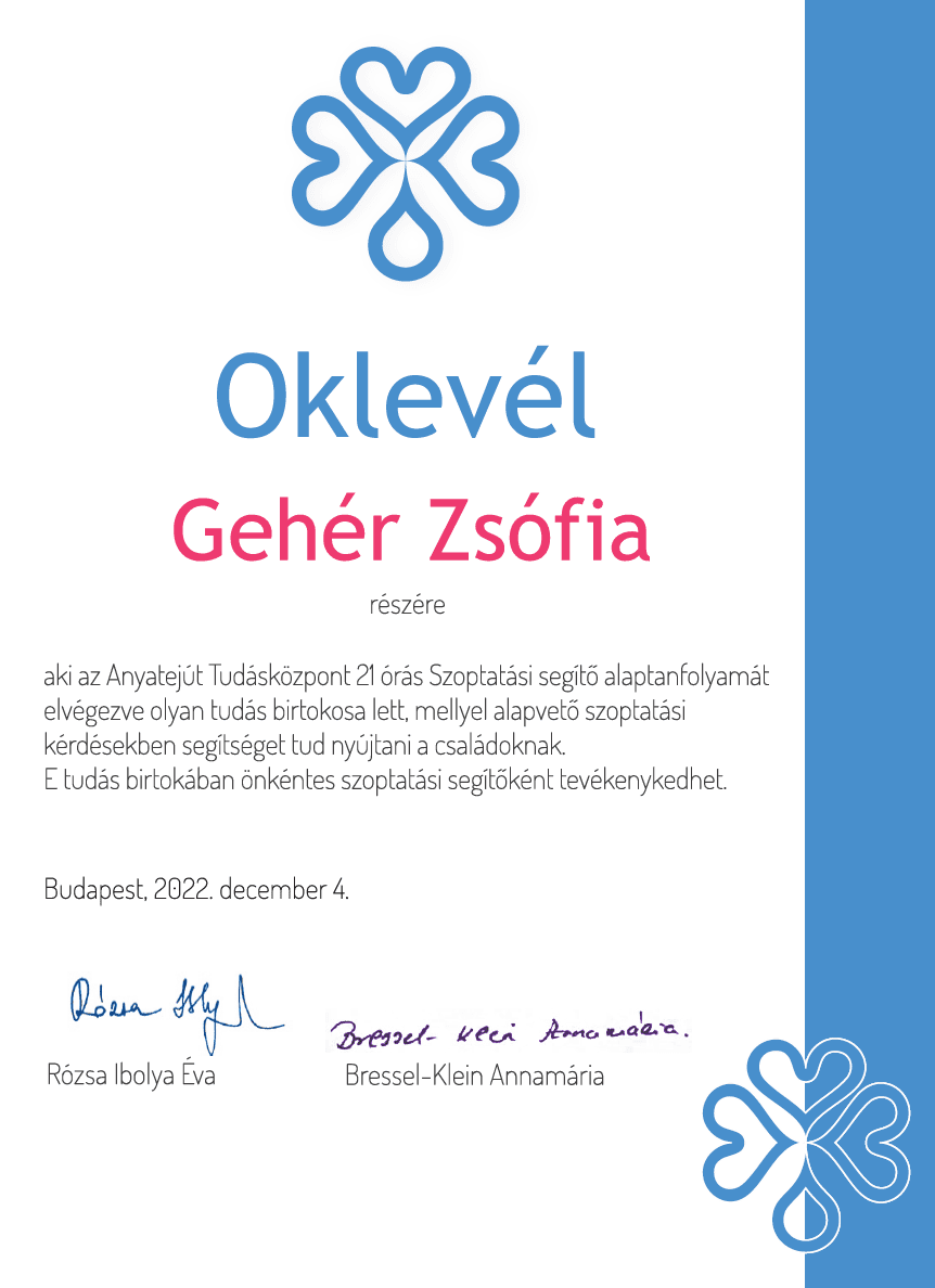 Volunteer Breastfeeding Helper - 21 hours - Anyatejút (2022. Budapest)